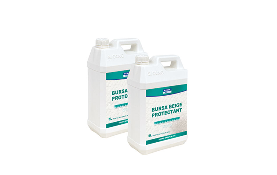 白沙米黃是一種石灰質(碳酸鈣)的沉積巖,由于該石種未經結晶變質化,所以這種石材結構強度低,密度較小,且空隙高,吸水率打(5%-15%).而其它大理石(注重結晶的變質巖)吸水率一般在(0.2%-1.5%),它們之間的吸水率相差巨大。且由于物理強度較低(抗壓、抗折及表面強度)易風化剝落和被日常的污染物(如:煙塵、茶水、果汁、紅酒、浴液等等)所污染。普通的思康ky40大理石專用防護劑不能完全的解決上述物理特性給白沙米黃帶來的各種問題,新研制的思康白沙米黃(萊姆石)專用防護劑具備更高的有效物含量,更 合理的針對性配方。本防護劑能有效滲入石材毛細孔內達1-3mm與石材充分結合形成一個縱深持久的防護層,表面不留任何痕跡,不改變石材顏色,不影響石材的透氣性,能有效阻止下潮上滲,并阻止水及污染從外部侵入。同石材底面密封劑KY50或石材界面增粘劑KY55配合使用,能有效防止石材的水斑不干,鹽析泛堿,吐黃等各種病癥的發生。該防護劑具有優良的抗老化性、抗紫外線,耐候性達10年以上,產品固化后在接觸食物時,無任何毒性,不會對人體有害。